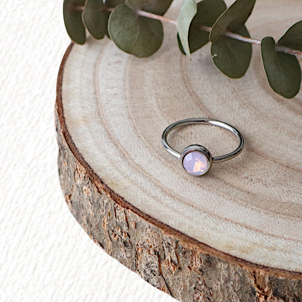 ANILLO PIEDRA ROSA CINQUE TERRE. Anillo de acero, plateado, con piedra engarzada en tono rosa. No es ajustable por lo que se debe elegir la talla del producto.
