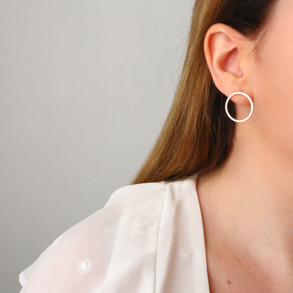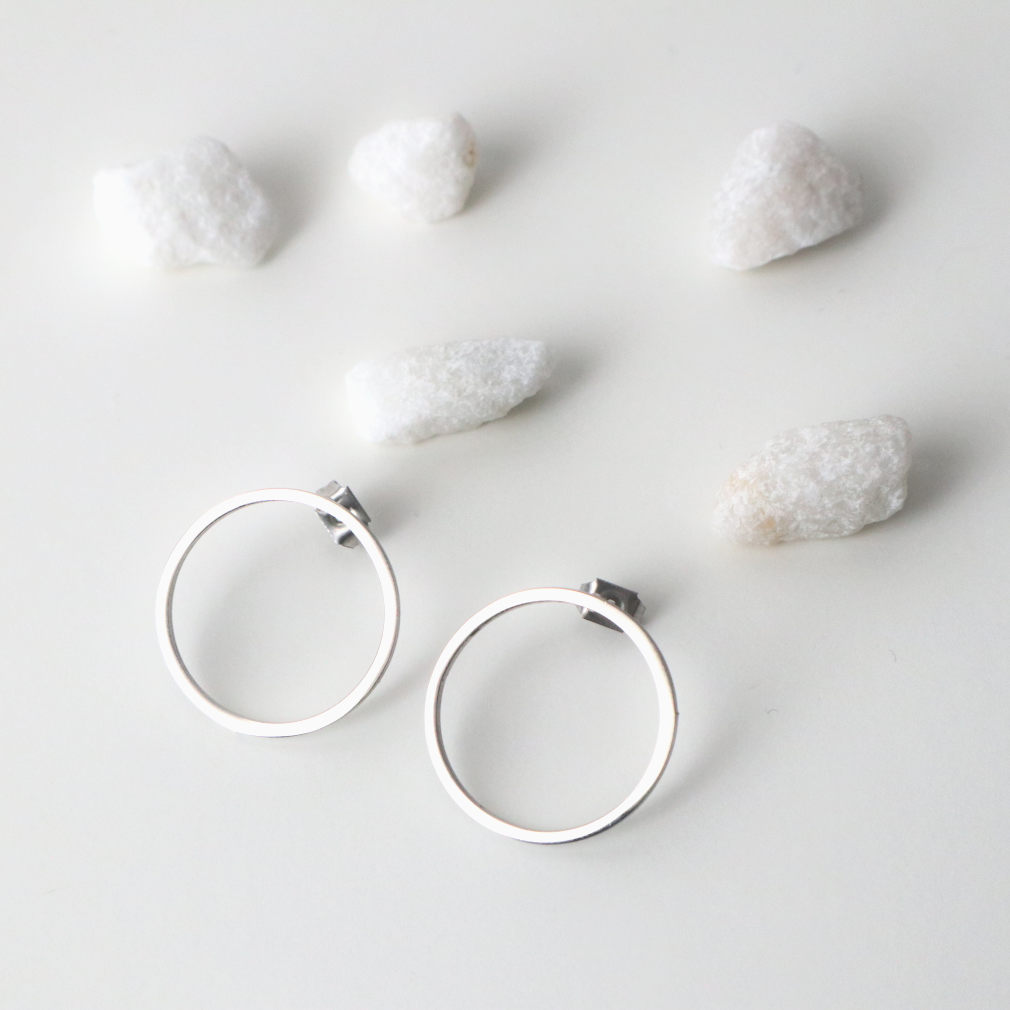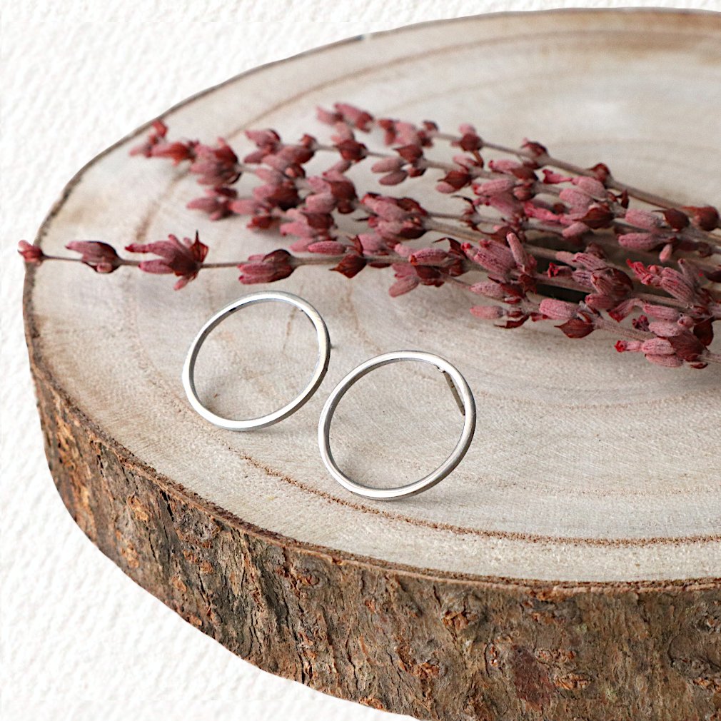 PENDIENTES MINIMAL CÍRCULO OPORTO: Pendientes de acero, plateados, de estilo minimalista con forma de círculo. Cierre de tuerca.