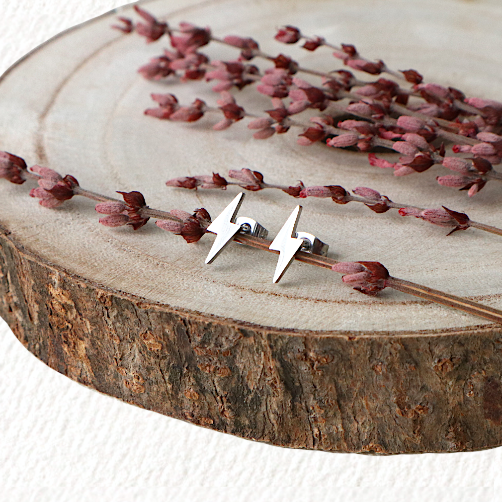 PENDIENTES RAYO ASGARD. Pendientes de acero, en tono plateado, con forma de rayo. Cierre de tuerca. Puedes elegir comprarlos sueltos o en par.